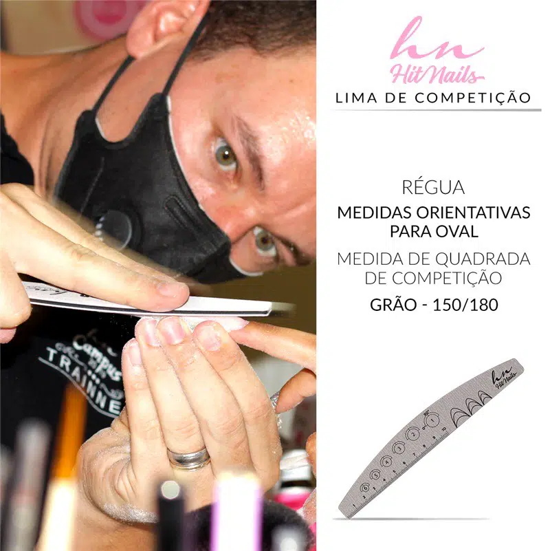Lima de unha cinzenta com marcações e texto 'Hi Nails'